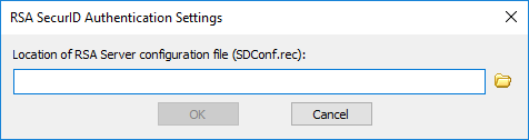 Click the folder icon to specify the location of the RSA Server configuration file (sdconf.rec). Note that SecurID files will reside in this location. Node secret and sdstatus.12 files will be generated at this location. When configuring RSA in an HA environment be sure to have the sdconf.rec file store locally for each node. Each node MUST have its own copy of sdconf.rec.
