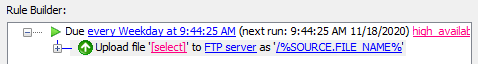 In the Rule Builder, click one of the undefined parameters (for example, '[select]' or '/%SOURCE.FILE_NAME%'). The Upload/File Offload Configuration wizard appears.
