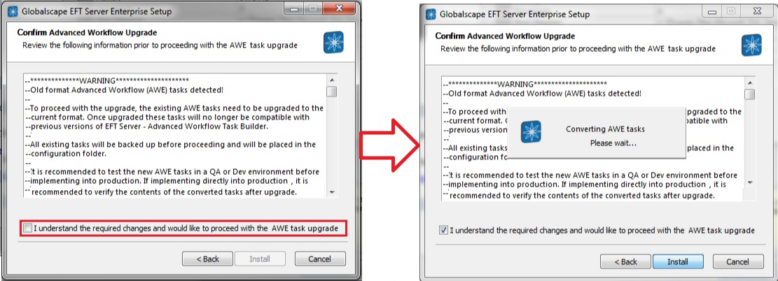 If the upgrade process fails, EFT will create an Advanced Workflow migration log file with information about conversion process so that the admin can be aware of any issues or changes detected during conversion.
