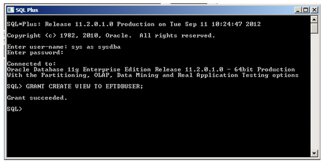 GRANT CREATE VIEW TO EFTDBUSER;