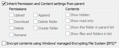 The Encrypt contents (EFS) check box allows you to right-click a folder in the VFS tree (left pane) and encrypt the contents of the selected folder. (Not available in EFT Arcus.)
