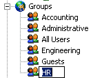 Type the new name in the text box, then press ENTER or click away from the box. The Groups node will automatically resort alphabetically.