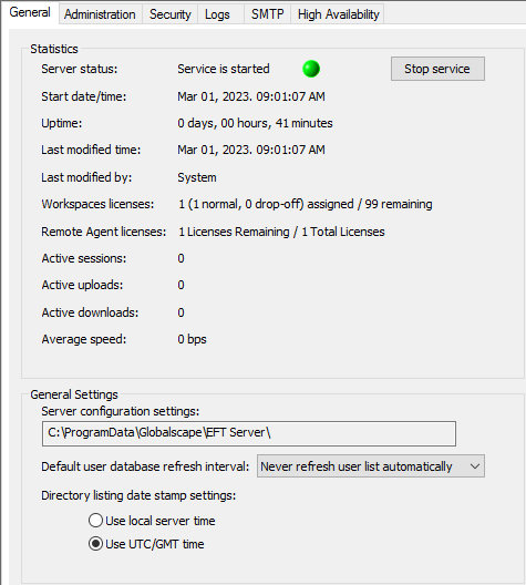Database refresh should be disabled on EFT nodes used in HA configurations. (Set to Never refresh user list automatically.)