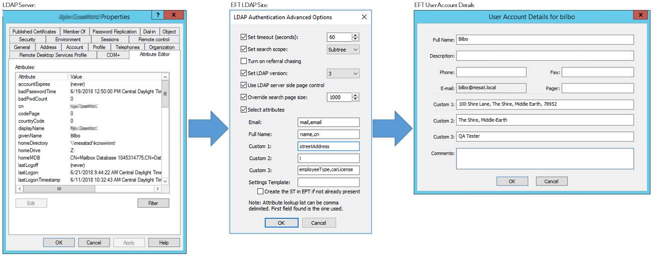 Map LDAP Account Attributes to EFT User Account Details
