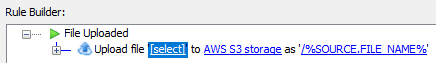 After specifying an event in the Rule Builder, in the Actions list, double-click Copy/Move (push) to or Download file from cloud storage.