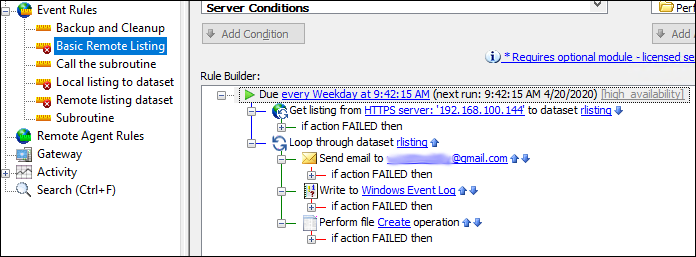 Below is an example of what contents you need to put in the Email, WEL, or file write to grab the contents of the local listing: