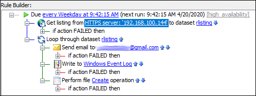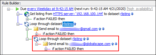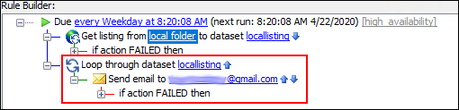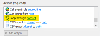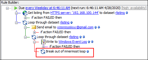 When conditions in the loop are met, there is no need to continue parsing the dataset. In this event rule, the second loop will break after it runs through the dataset one time. The first loop will continue until complete.