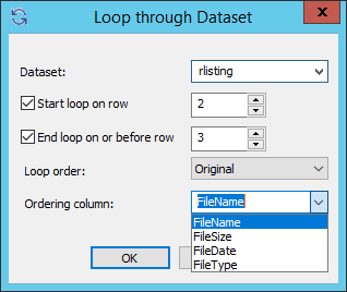 You can specify to loop through the whole dataset, or start and end on a specific row, and specify the column for ordering.