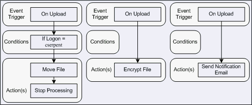 Based on these Rules, cserpent's file will be moved, but uploaded files will not be encrypted, nor will cserpent receive an email notification when a file is uploaded.