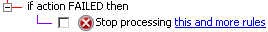 this and more rules—The current Rule is aborted, and the next Rules in order are not started. That is, stop any subsequent Actions for this Rule and don’t process any subsequent matching Rules.