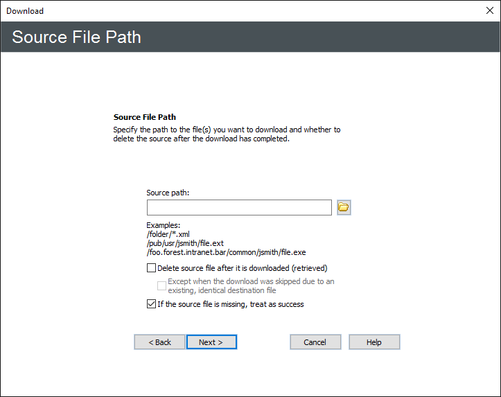 In the Source path box, provide the path to the file(s) that you want to download. For example, type: