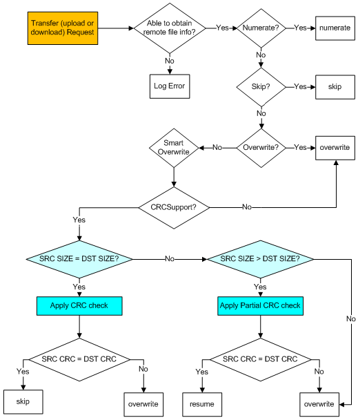 Smart Overwrite = EFT performs a CRC match of the files. (Supported only on FTP transfers.)
