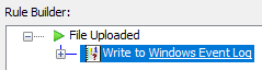 When you add the Windows Event Log Action to the Rule Builder and then click the hyperlink in the Action, the Windows Event Log dialog box appears. Use this dialog box to specify the WEL message parameters.