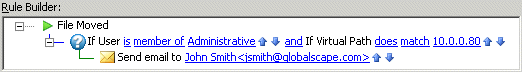 If you need to use more complex criteria using AND and OR, you can use wildcard logic to create any logic that wildcards support. For example, if you add the File Name Condition to the Rule Builder, you can then define the path mask using complex logic with wildcards.