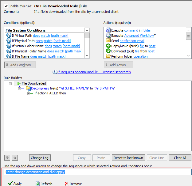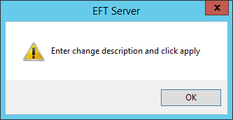When the Change Log is enabled and you make a change to an Event Rule, a message appears that tells you to provide a change description.