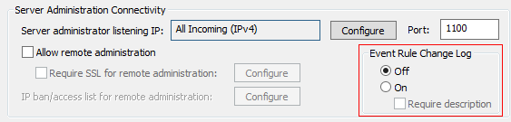 On the Server's Administration tab, under Event Rule Change Log, click On.