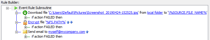 Add desired actions to the subroutine. For example, you could add a Download file from host action, OpenPGP action to encrypt the downloaded file, and a Send Email notification action to notify you when the action is complete.