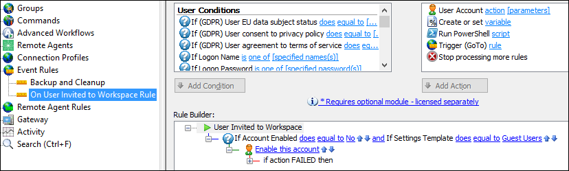 User Invited to Workspace /Workspace Invitation Sent - If an account has been disabled due to expired Workspaces links, you can configure an Event Rule to re-enable the account automatically when they are sent a Workspaces invitation.
