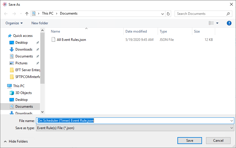 Right-click the Event Rule that you want to export (or the Event Rules node), then click Export Event Rule. The Windows Save As dialog box appears.