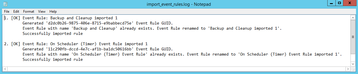 A message appears to confirm that it was imported and you are offered the option to view the log. The log file is saved to the logged-in user's \Appdata\Local\Temp\EFT folder. The Event Rule GUID, the name of the Event Rule, and success or failure of import appears in the log.