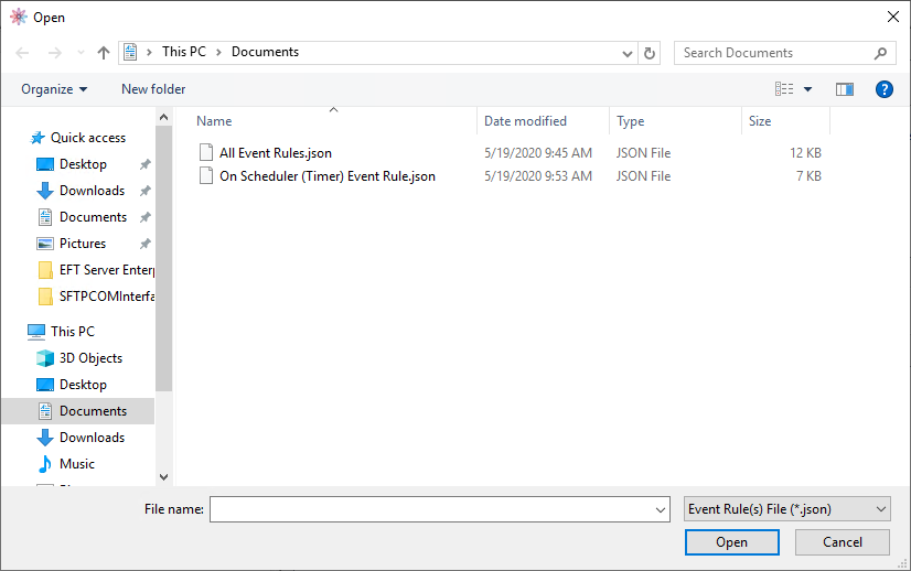 When moving an installation of EFT from staging to production, the biggest issue is moving the Event Rules. When you do a Server Backup, all of the Event Rules are copied. Often, however, you don't want ALL of the Event Rules moved to production, just certain ones. With the import/export feature, you can export just the Event Rules that you want as a JSON file, edit them, if needed, and import them into another EFT installation or Site. Or perhaps you want to send the rule to a colleague or technical support for assistance. You can send someone the file, that person can review and edit as needed, and then send it back to you, and then you can import it.