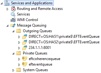 When EFT is installed for active-active clustering, the installer determines whether MSMQ is enabled, and enables it if it is not. EFT HA relies on the MSMQ service for two important functions: