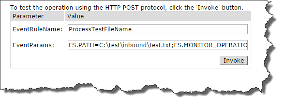http://localhost/WebService/InvokeEventRule?EventRuleName=ProcessTestFileName&EventParams=FS.PATH=C:\test\inbound\test.txt;FS.MONITOR_OPERATION=added