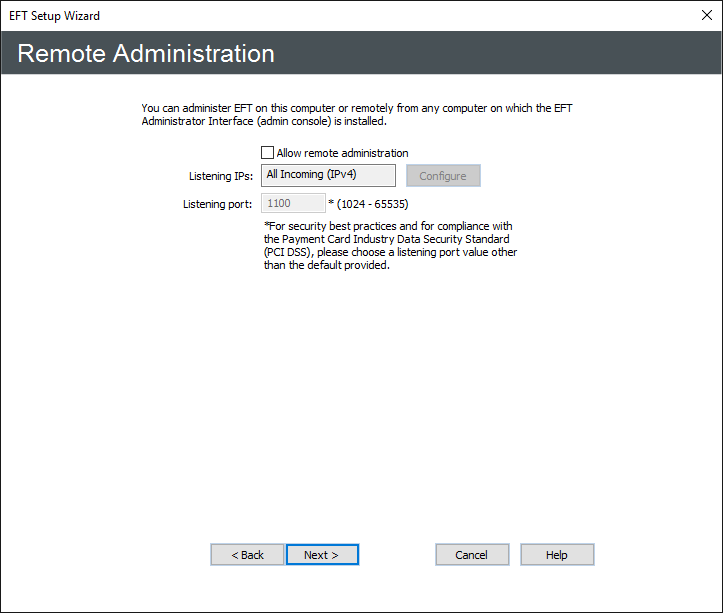 - Click Next. The Remote Administration page appears.