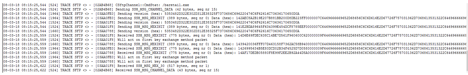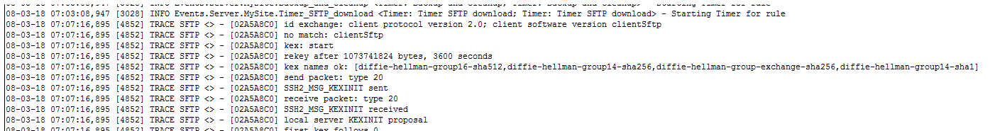 When using the SFTP2.dll, the logs at the KEX section are in ASCII format: