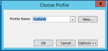In Outlook 2013 and 2016, the Choose Profile dialog box appears.
