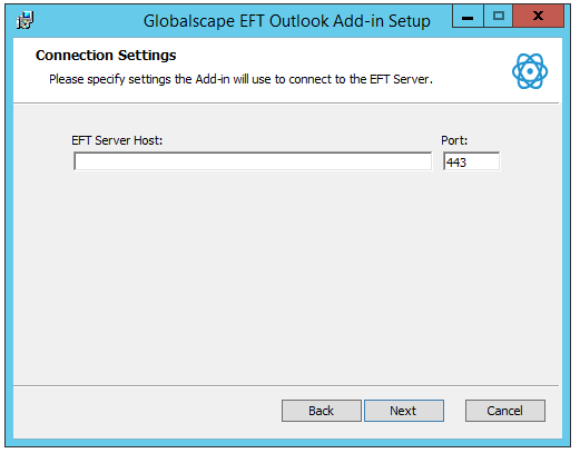 Specify the EFT Server Host (URL) and Port, then click Next.