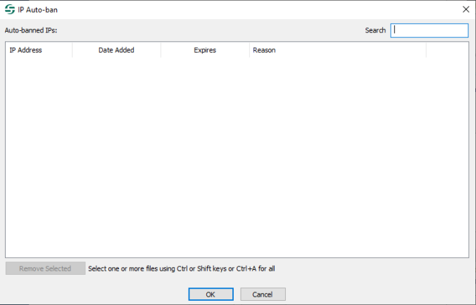 To remove an IP address from the auto-ban list, click it, and then click Remove Selected.