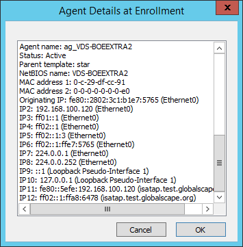 Details - Displays information about the Remote Agent: name, status, template, MAC addresses, IPs. Click OK to close the dialog box.