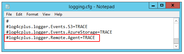 #log4cplus.logger.Remote.Agent=TRACEand remove the POUND SIGN #-
