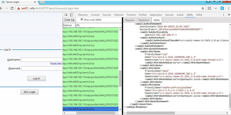 (Requires AAMM) When setting up and testing SAML communications between the SP (EFT) and your IdP, you may need to review assertions, especially if authentication is failing for some reason. There are two ways you can do this: