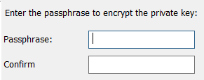 Provide and confirm the passphrase used to encrypt the private key. The passphrase cannot contain more than 256 characters, cannot contain only spaces and periods, and cannot contain the following characters: