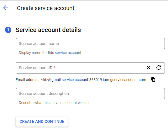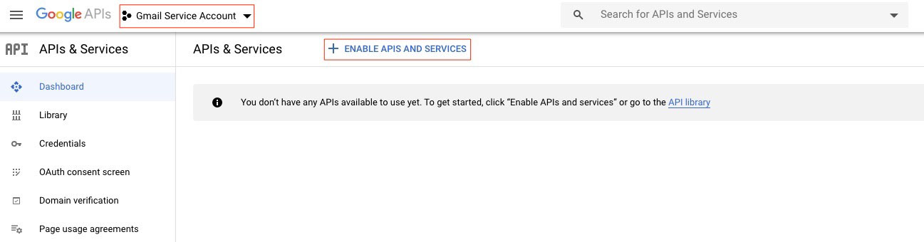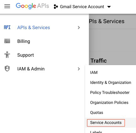 The next steps will enable the service account with Gmail.