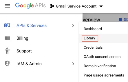 In the API & Services > Library, click IAM & Admin > Service Accounts.