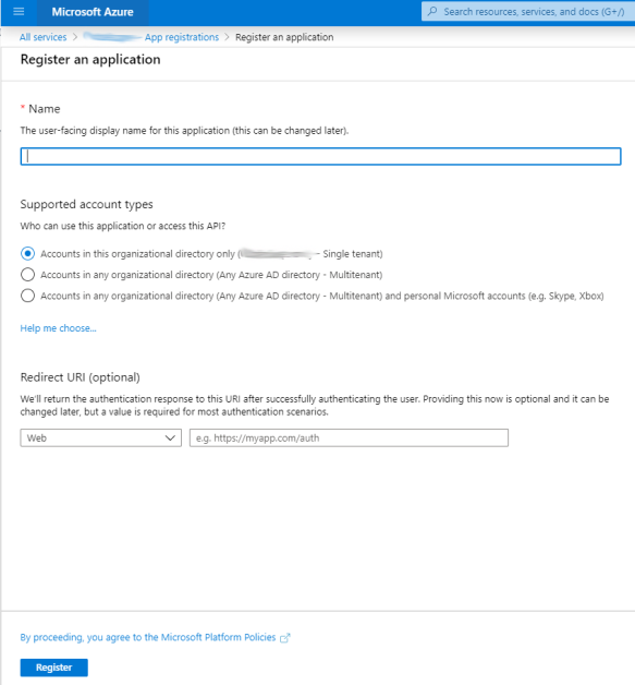 Click Azure Active Directory (Entra ID). (If your organization already has an Azure Active Directory (Entra ID) account, it will appear here, and you will need administration access to register your application (EFT).)