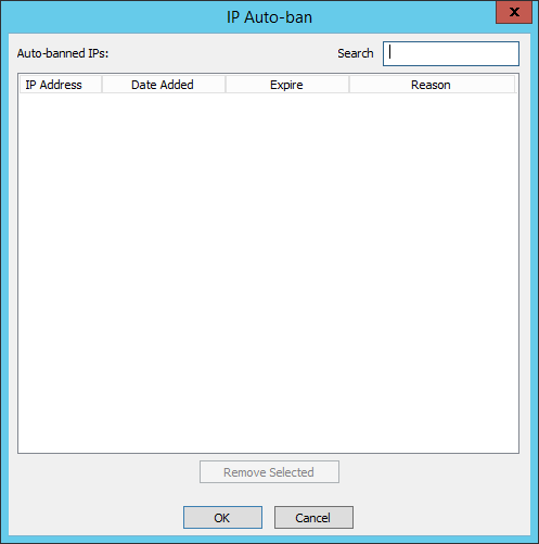 To view the list of banned IPs, click Autoban List. (On the Site only) The IP Auto-ban dialog box appears.