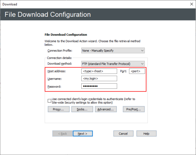 All non-password fields that accept non-validated, user-input string values accept template variables in addition to context variables and normal strings. For all secret/password fields that are masked (for example, SAS token, S3 secret key, copy/move password), if the value entered starts with a left bracket < and ends with a right bracket >, then it will be interpreted as a template variable.