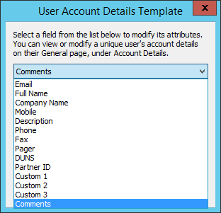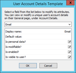 For each User Account Details field, select it in the drop-down list, then select or clear the attribute check box for each field: