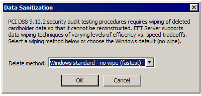 The Regulatory Compliance Module (RCM) provides a data sanitization/data wiping option, which satisfies PCI DSS requirements. If you do not activate the module, this feature is disabled after the trial expires.