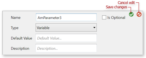 | Is Optional | TRUE/FALSE | Specifies whether the parameter is optional (TRUE) or required (FALSE). Any call must provide arguments for all required parameters, but can omit arguments for optional parameters. Each optional parameter has a default value as part of its definition. If no argument is sent for that parameter, the default value is used. When you define a complicated function, you will often want to set this to optional (TRUE) for flexibility. |
