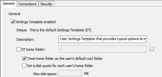 Select the Treat home folder as default root folder check box to make the home folder the user's root folder. If the check box is selected, the user cannot browse above their home directory.