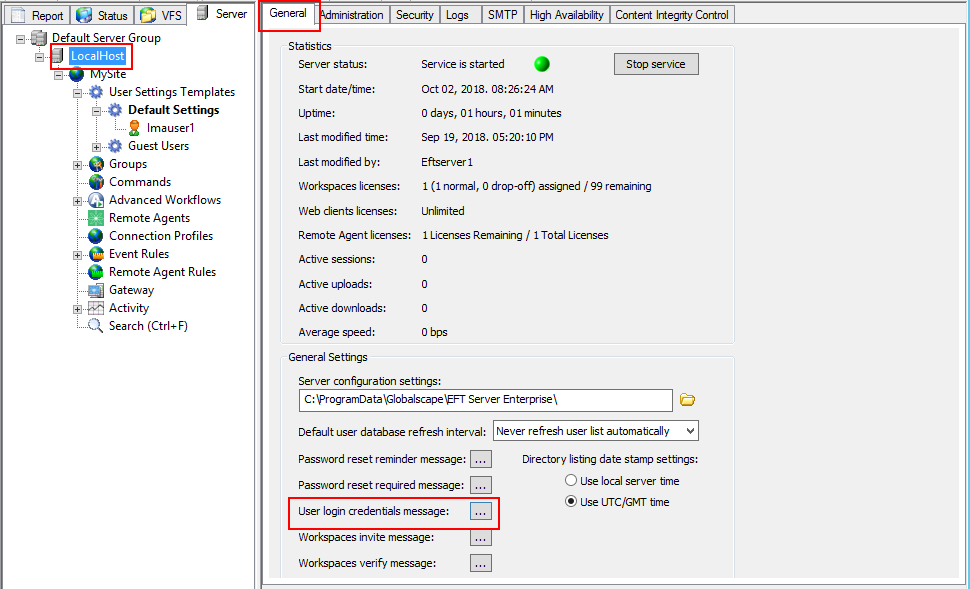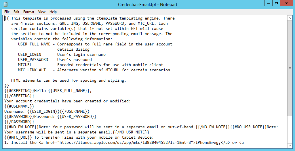 When you create a user, you have the option of sending the user an email that contains the login credentials for connecting to EFT. You can configure the content of the email to apply to all users.