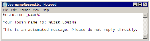 In the C:\ProgramData\Globalscape\EFT Server\Templates\ directory (by default), open the file UsernameResend.txt.