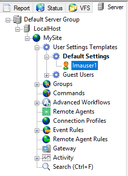 Expand the Site node, User Settings Templates node, and Settings Template node of the user, then click the user that you want to monitor.