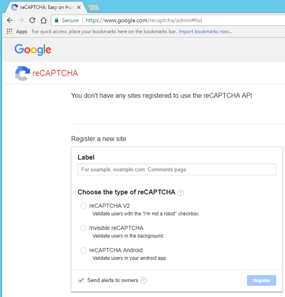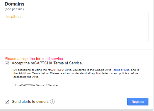 In the Domains box, type one or domains (Sites) that are to use reCAPTCHA.