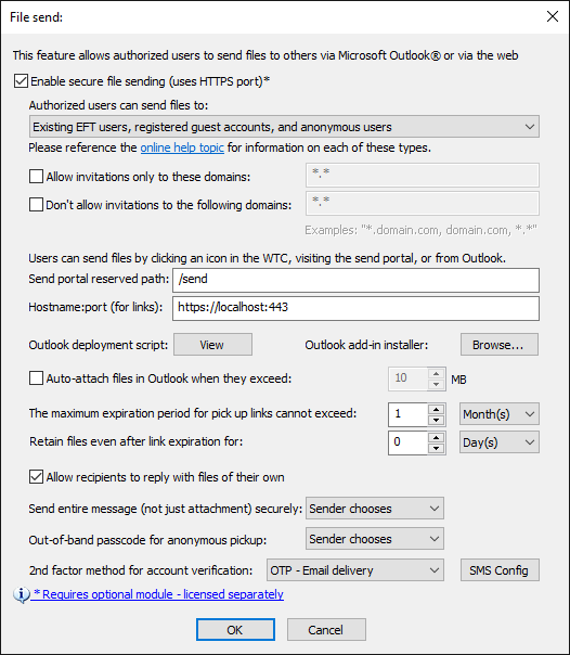 Select the Enable secure file sending check box. This requires the HTTPS port to be configured and available.